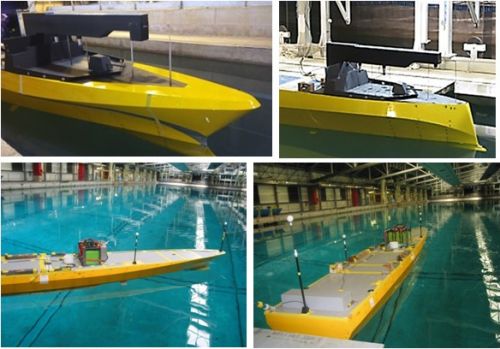 Le comportement sur houle oblique a été étudié dans le bassin océanique de la société Qinetiq en Grande-Bretagne, dont le générateur de houle vient d’être totalement rénové.