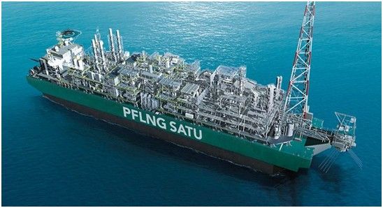 La première cargaison a été chargée le 1er avril 2017sur un navire du type MOSS. « PFLNG Satu » a une capacité de production de 1,2MTA , une longueur hors tout de 365 mètres et une largeur de 60 mètres. Le poids sec de la plateforme est de 132, 000 tonnes et peut contenir dans ses cuves du type N0 96 177,000m3 .