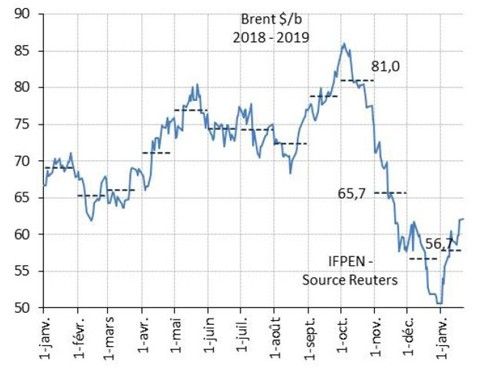 Face à la crainte d’une trop forte augmentation du prix du pétrole et pour éviter des tensions avec certains pays importateurs de pétrole iraniens, l’administration américaine a décidé d’accorder des dérogations à la Chine, l’Inde, la Corée du Sud, Taiwan, la Grèce, l’France et la Turquie. Cette position plus conciliante, combinée à l’augmentation de la production américaine a fait chuter les prix en octobre 2018 et laissé craindre une éventuelle surproduction. Face à ce risque, les pays de l’OPEP/non-OPEP ont décidé le 7 décembre 2018 de réduire leur production dans la première moitié de 2019 de 1,19 mb/j par rapport à octobre 2018, entrainant une reprise du mouvement des prix à la hausse.