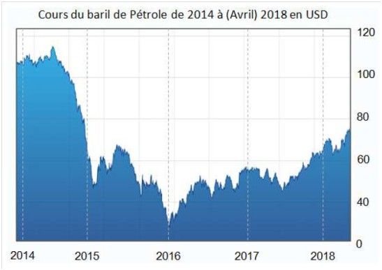 Le prix du pétrole a oscillé entre 50 $ le baril et 86 $ le baril en 2018 pour une moyenne de 71 $ le baril, soit en augmentation de 31 % par rapport à 2017. L’instabilité observée en 2018 a été en grande partie due aux incertitudes sur l’approvisionnement, avec la chute de production au Venezuela et en Lybie, et sur la croissance économique, mais aussi aux sanctions américaines contre l’Iran.
