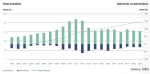 En 2021, la flotte mondiale s’est encore accrue d’environ 3 % en capacités malgré une baisse des livraisons de navires neufs à 84,3 millions de tpl contre 89,4 millions en 2020.
