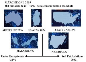 En 2021, les livraisons de gaz naturel (gazoducs et LNG) ont augmenté de 7 % à 1040 milliards de m3 , cette augmentation étant due à la forte demande en Europe, essentiellement alimentée par gazoducs. Les livraisons de LNG ont pour leur part augmenté de 5 % à 492 m3 , essentiellement due à la demande chinoise, coréenne et brésilienne. Parmi les fournisseurs de LNG, l’Australie a confirmé sa place de premier producteur mondial, les Etats-Unis s’apprêtant à rejoindre et dépasser le Qatar à la seconde place. La capacité opérationnelle d’approvisionnement en GNL n’a toutefois pas suivi la demande en 2021, créant une tension sans précédent sur l’équilibre mondial du marché gazier.