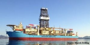 En terme d’exploration pétrolière offshore pour de nouveaux réservoirs, les pays en vue sont le Guyana (ex Guyane anglaise), le Suriname (ex Guyane hollandaise), le Brésil, l’Angola. Notons le record du monde battu par TotalEnergies pour un forage en Angola par 3628m de profondeur d’eau dans le bloc 48 avec le rig Maersk Voyager (photo ci-dessous).