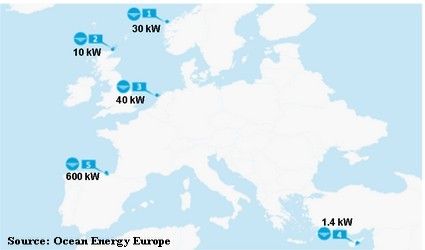 Alors que l’Europe domine toujours l’activité marémotrice mondiale, de plus en plus de capacité houlomotrice est installée en dehors de l’Europe, souvent grâce à un soutien gouvernemental important.