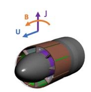 Une autre étude impliquant DGA TH porte sur la propulsion Magnétohydrodynamique (MHD) d’une plateforme navale ; ces travaux, de nature pluridisciplinaire, sont conduits en collaboration avec DGA Techniques Navales et des laboratoires de l’université de Grenoble. La propulsion MHD est un mode de propulsion par réaction étudié dès les années 60 pour réaliser une propulsion sans hélice ou autre pièce mécanique en mouvement. Au sein d’un canal où circule l’eau de mer (électrolyte), on impose un champ B généré par un aimant supraconducteur. En y faisant circuler une densité de courant J, on crée une force électromagnétique de valeur . Une force s’exerce par réaction sur les bobines créatrices du champ B et réalise la poussée du sous-marin.