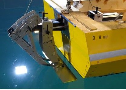Essai d’une maquette de frégate équipée d’un Hull Vane® au tableau arrière