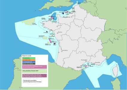 En France, avec 3 champs en service (Saint Nazaire, Fecamp, Saint Brieuc), l’éolien en mer a produit en 2024,avec 1474 MW installés dont 658 MW de nouveaux raccordements, près de 4 TWh d’électricité, plaçant la France en troisième position des pays européens pour les nouvelles capacités connectées au réseau pendant l’année. Une ferme pilote a été raccordée fin 2024 en Provence-Alpes-Côte d’Azur pour une puissance de 25 MW, il s’agit du premier raccordement d’éoliennes flottantes de cette envergure.