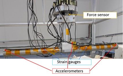 D’autres travaux en cours ont pour but d’étudier la réponse hydro-élastique de structures tubulaires lors d’un impact hydrodynamique. Il s’agit des travaux de thèse de FrankiTaussé (projet DURAWAVE financé par la région Bretagne et l’ENSTA). C’est une question importante, car le chargement induit par un impact hydrodynamique étant de nature impulsive, évaluer les contraintes générées dans la structure de « manière quasi-statique » n’est généralement pas correct. Les travaux menés comportent un volet théorique, portant sur développement d’un modèle semi-analytique couplant la théorie des poutres d’Euler-Bernoulli à un modèle d’impact hydrodynamique de type Wagner. Une campagne d’essais a aussi été réalisée avec la machine de choc de l’ENSTA. Les résultats obtenus ont montré l’importance de tenir compte des couplages hydro-élastiques dans la modélisation de la réponse structurale.