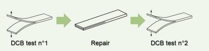 Dans un premier temps, la capacité du matériau à tolérer un endommagement, en l’occurrence la propagation d’une fissure en mode ouverture, est évaluée. Ensuite, une réparation est effectuée en appliquant le même cycle de thermo-compression que celui utilisé lors de la consolidation initiale. L’essai mécanique est alors répété sur l’éprouvette réparée. Cette séquence peut être reconduite plusieurs fois afin d’analyser l’effet de réparations successives. Enfin, l’influence de la prise en eau peut également être explorée en saturant préalablement le matériau en eau de mer avant les essais.